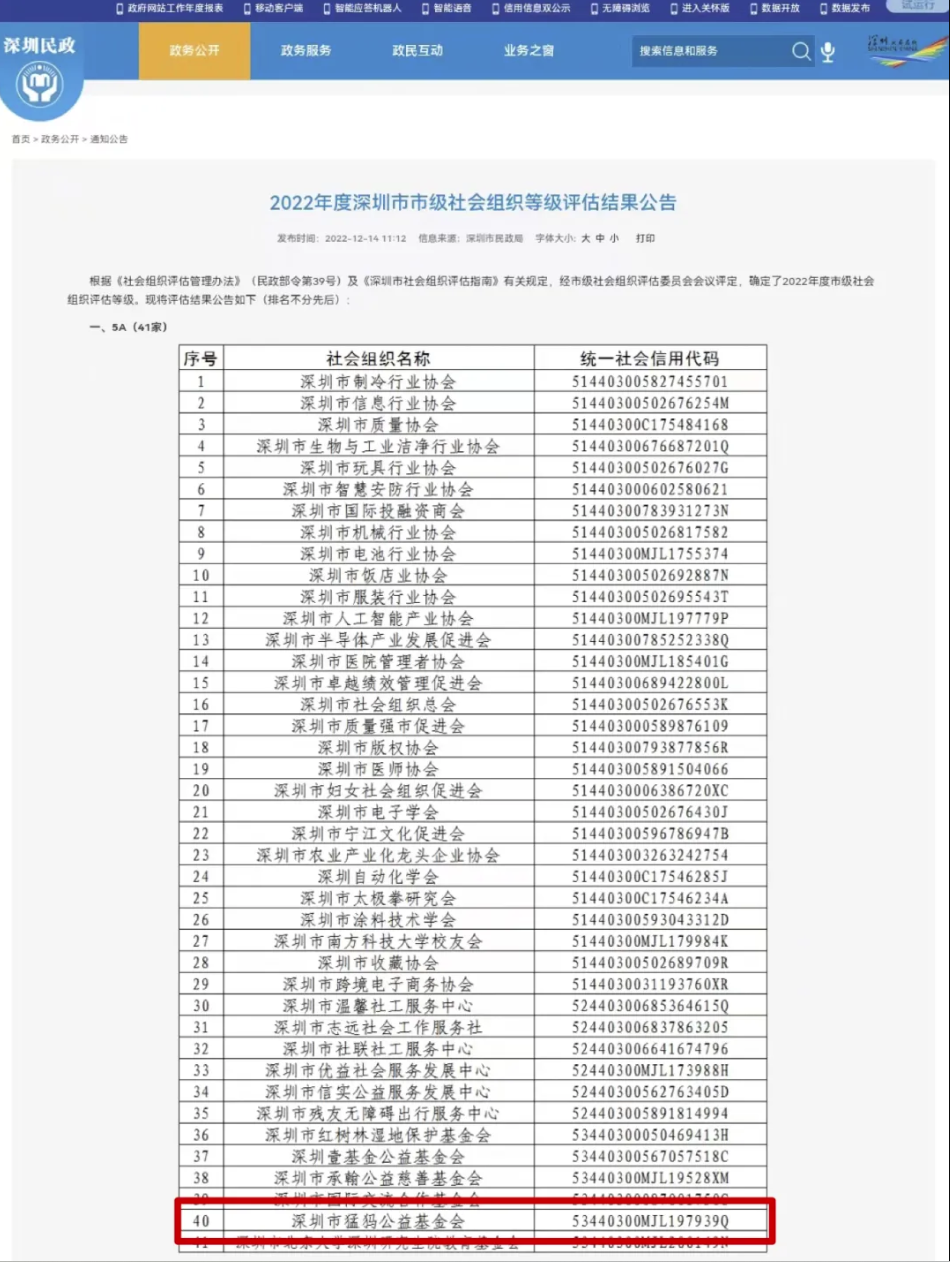 喜报|深圳市猛犸公益基金会获评5A级社会组织