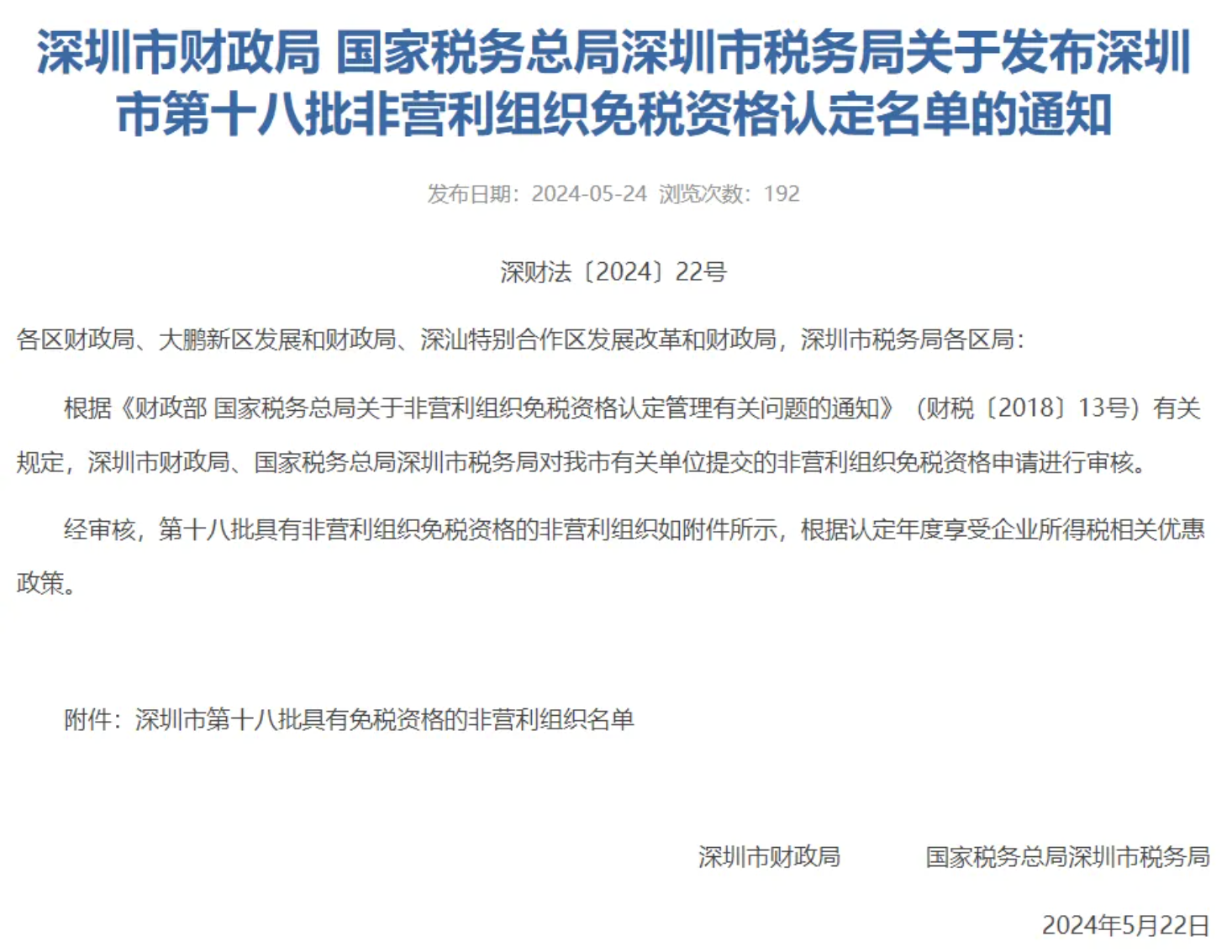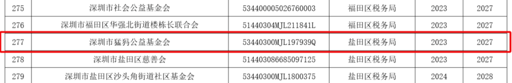 2024年5月22日,深圳市财政局 国家税务总局深圳市税务局发布了《深圳市第十八批非营利组织免税资格认定名单的通知》,深圳市猛犸公益基金会获得(2023-2027年度)非营利组织免税资格,根据认定年度享受企业所得税相关优惠政策。(猛犸基金会在名单中位列277行)